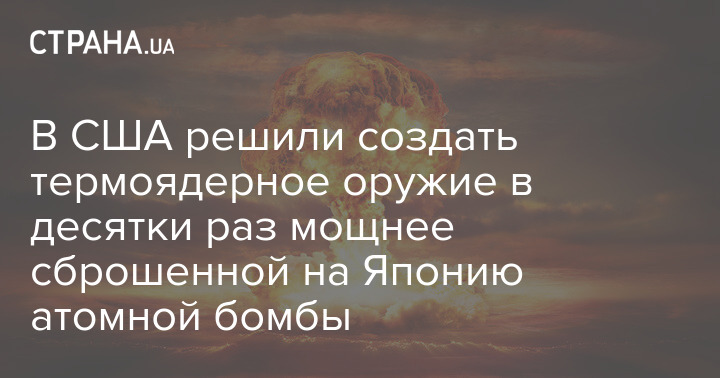 В США решили создать ядерное оружие, которое будет в 24 раза мощнее сброшенной на Японию бомбы.
