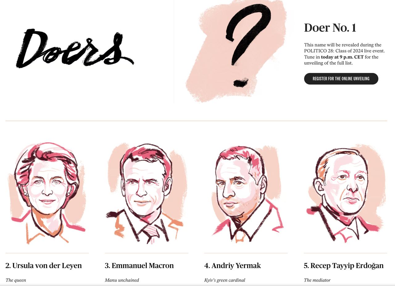 Пока представлены только места со второго по девятое в ряде номинаций: "Деятель", "Нарушитель", "Мечтатель". Первые места рейтинга будут объявлены сегодня в 10 вечера по Киеву.