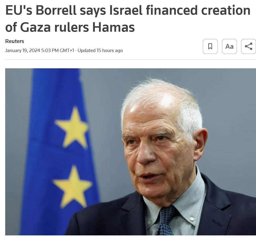 "ХАМАС финансировался правительством Израиля в попытке ослабить Палестинскую администрацию, возглавляемую ФАТХ (Движение за национальное освобождение Палестины, главным конкурентом которого является ХАМАС - Ред.), – сказал Боррель.