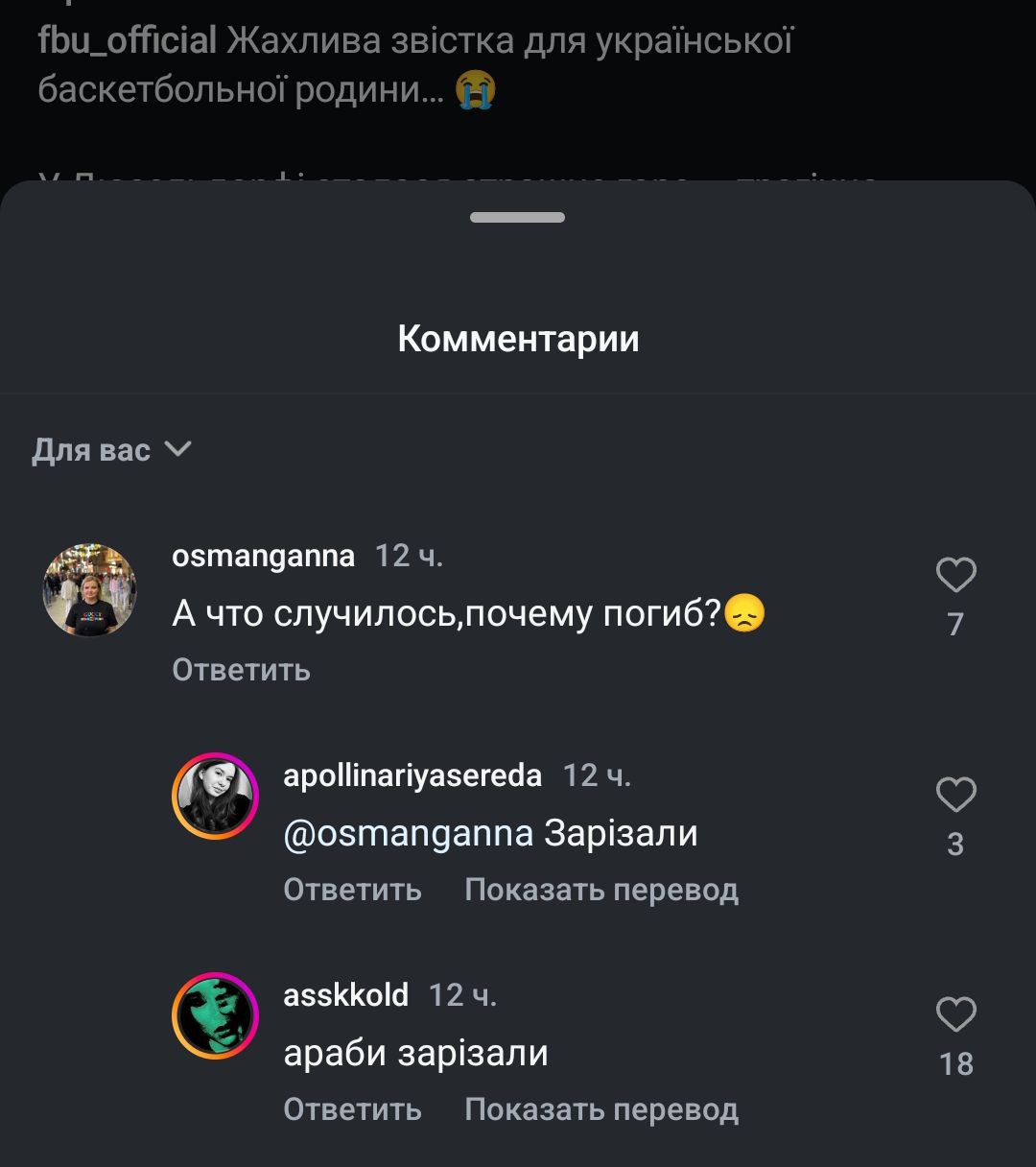 В комментариях под сообщением о гибели украинского баскетболиста в Дюссельдорфе пишут, что его зарезала группа арабов - якобы за украинскую символику на одежде.