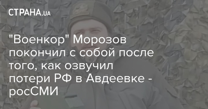 "Военкор" Морозов покончил с собой после того, как озвучил потери РФ в Авдеевке - росСМИ