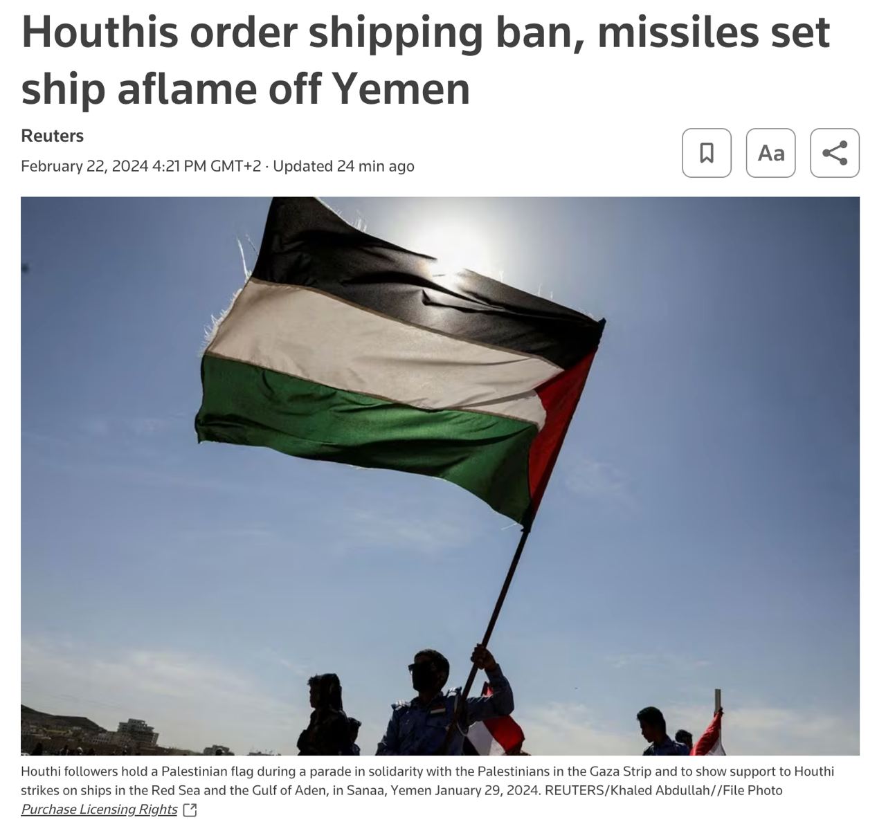 Первого февраля стало известно, что хуситы нанесли ракетный удар по американскому торговому судну, следовавшему в Израиль.