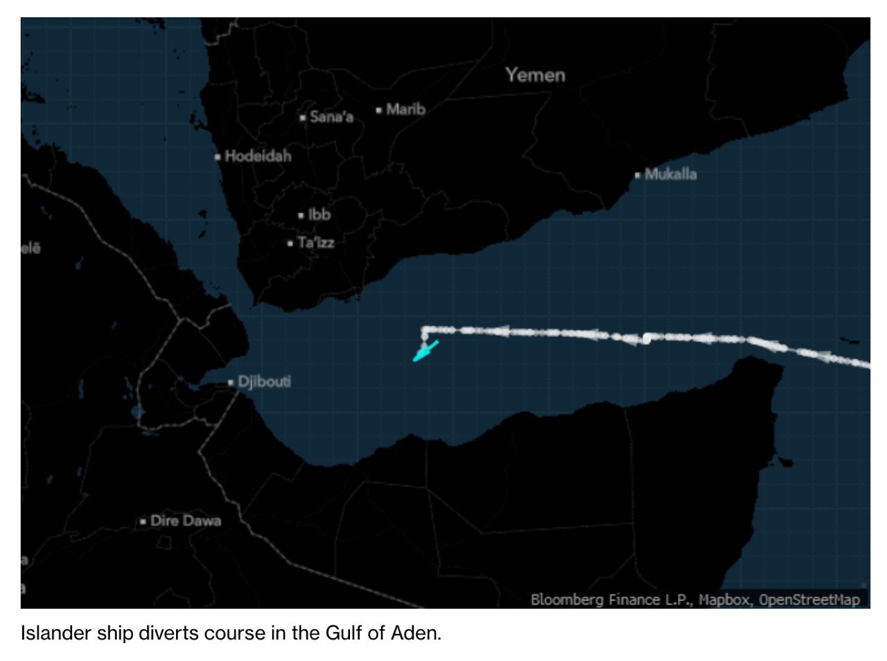 Между тем сегодня в Аденском заливе хуситы атаковали двумя ракетами британский грузовой корабль Islander, который после нападения загорелся, сообщает Bloomberg со ссылкой на ВМС Британии.