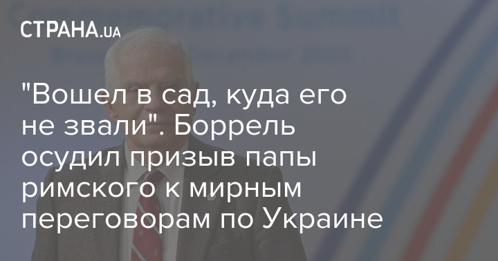 "Вошел в сад, куда его не звали". Боррель осудил призыв папы римского к мирным переговорам по Украине