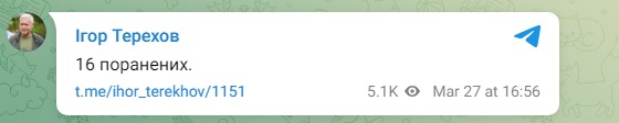 "Сильно повреждены пятиэтажные дома, где жили люди. Также пострадал институт неотложной хирургии", - написал он.