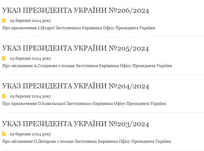 Зеленский уволил двух заместителей Ермака - мужчин и назначил вместо них двух женщин