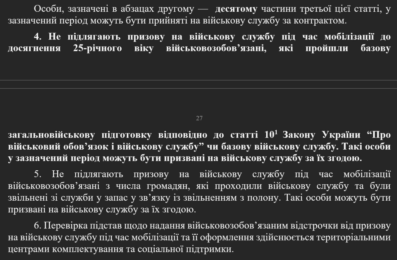 В новом законопроекте об ужесточении мобилизации перечислены категории граждан, имеющих право на отсрочку от мобилизации.