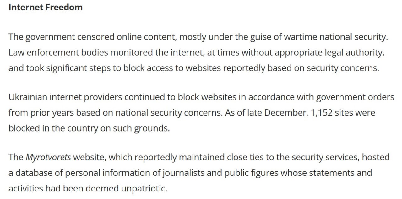 Украина ввела цензуру на онлайн-контент под предлогом военного времени - Госдеп