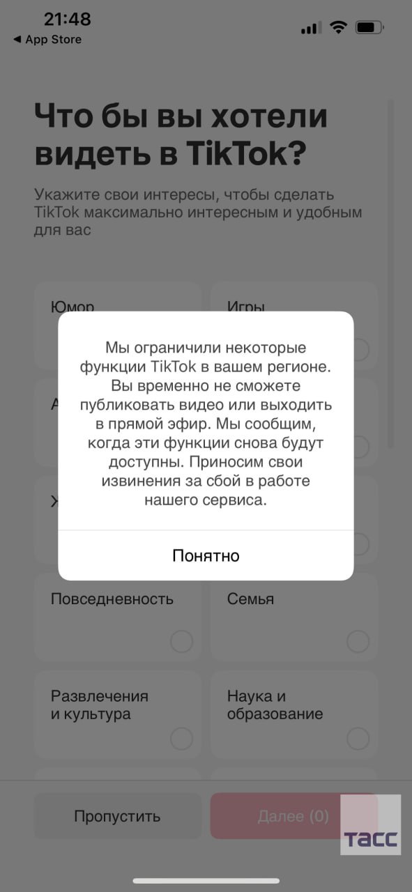 В компании BiteDance, которой принадлежит ТикТок, возобновление работы соцсети на территории России пока не подтвердили и не прокомментировали.