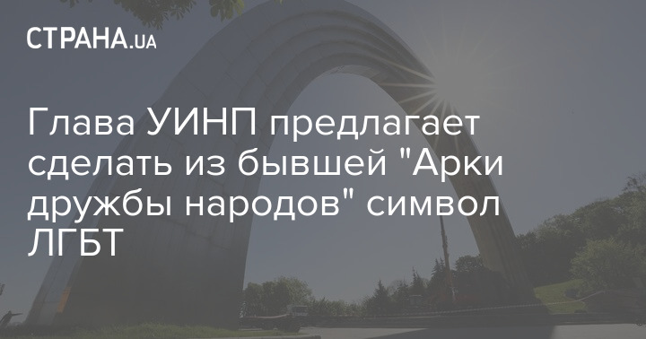 Глава Украинского института национальной памяти Антон Дробович предложил сделать из бывшей "Арки дружбы народов" (ныне Арка свободы украинского народа) символ ЛГБТ.