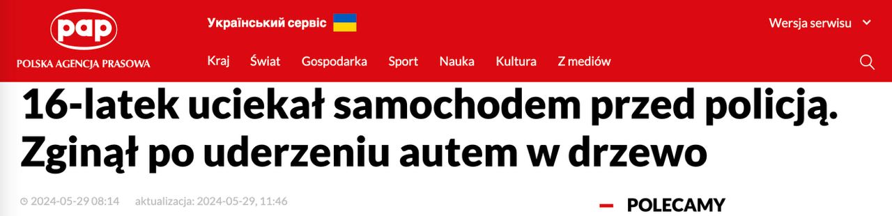 Напомним, в марте в Польше во время бегства от полиции погиб 18-летний украинец, врезавшись на авто в придорожный столб.