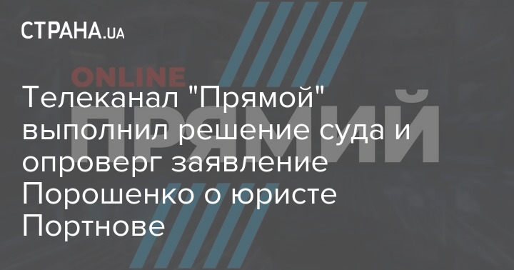 Телеканал "Прямой" опубликовал опровержение заявления Петра Порошенко касательно юриста Андрея Портнова. Сделать это его обязал  суд.