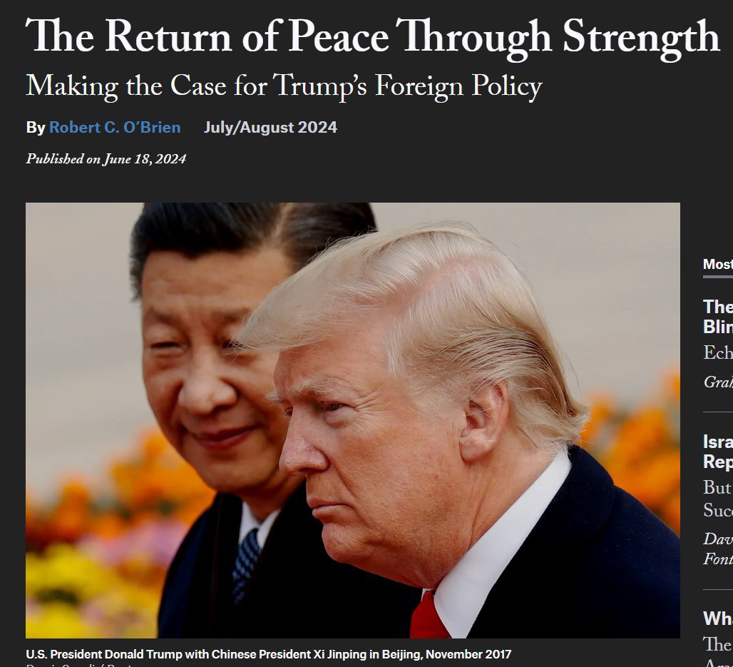 Бывший советник экс-президента по нацбезопасности Роберт О’Брайен написал статью, которая называется "Возвращение мира через силу". В ней идет речь о том, какой будет внешняя политика Дональда Трампа по Украине, если республиканец снова станет президентом США.
