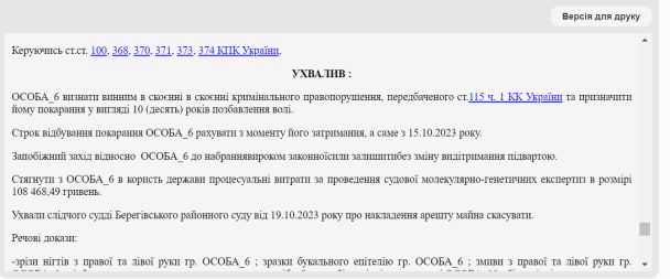Об этом говорится в приговоре Береговского районного суда Закарпатской области.