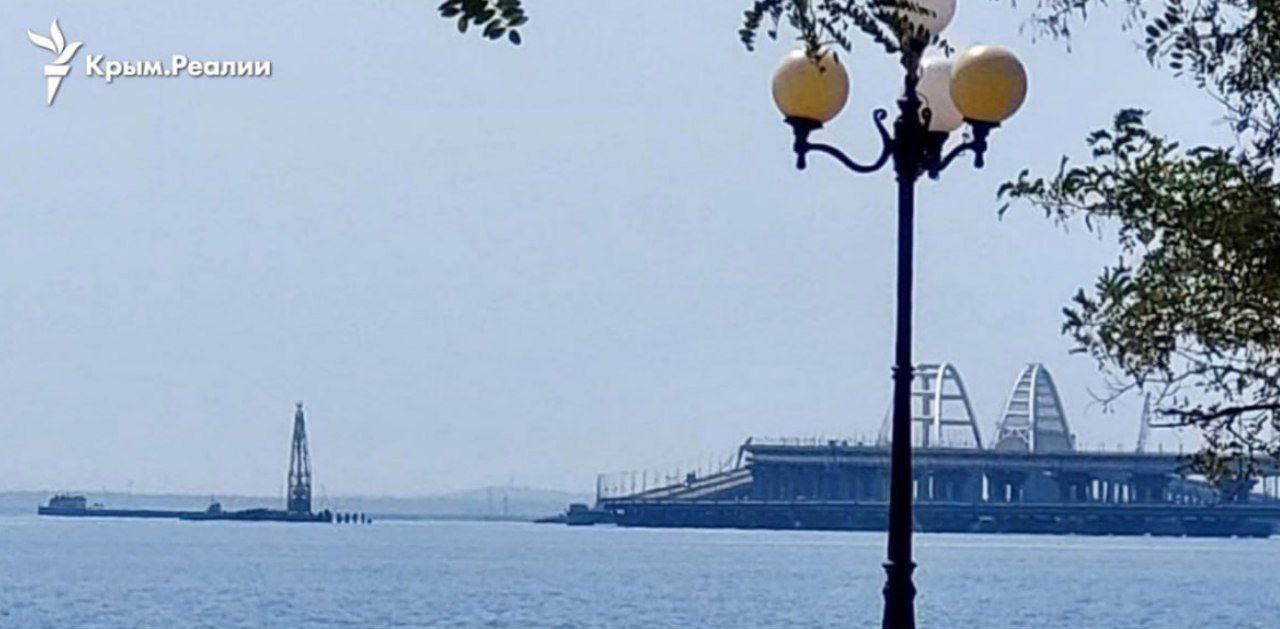 По информации издания, плавучий кран виден в акватории Керченского пролива. Количество барж, которыми Россия пытается защитить Керченский мост от морских дронов, увеличилось, утверждают очевидцы.