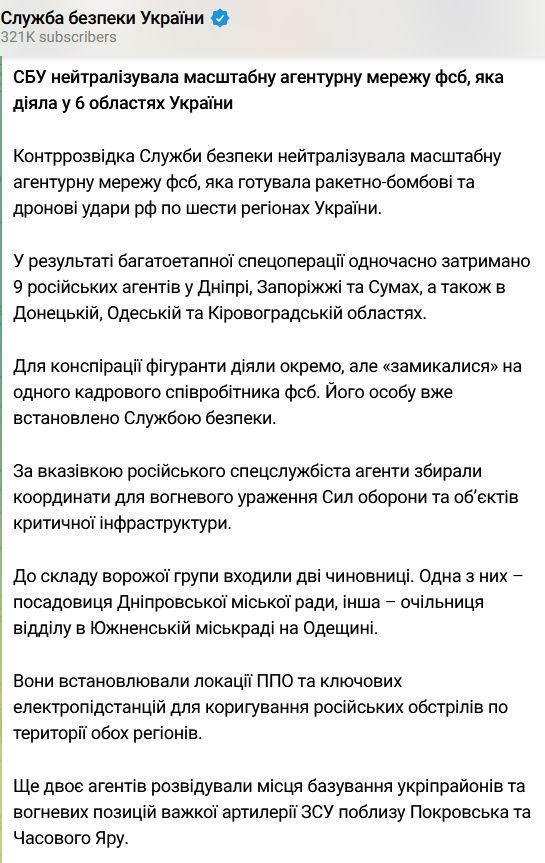 Также сообщалось, что суд приговорил российского агента ФСБ к 15 годам тюрьмы за подготовку ракетных ударов по Виннице. Агентом оказался 30-летний местный житель, активно поддерживавший вооруженную агрессию России против Украины в российских соцсетях.