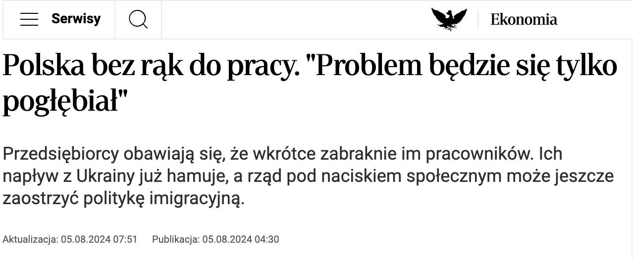 Демографическая ситуация в Польше также способствует увеличению дефицита рабочей силы.