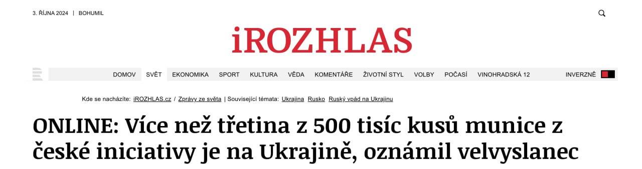 Напомним, Чехия разрешила Украине применять по территории РФ снаряды, поставленные в рамках инициативы Праги.
