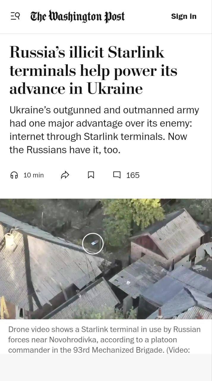 Нелегальные терминалы Starlink помогают российской армии продвигаться в Украине - WP