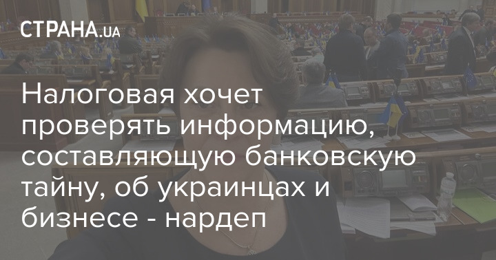 Налоговая служба Украины хочет проверять информацию, составляющую банковскую тайну, об украинцах и бизнесе. Об этом сообщила народный депутат Нина Южанина.