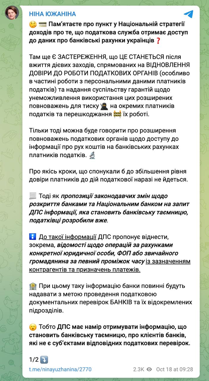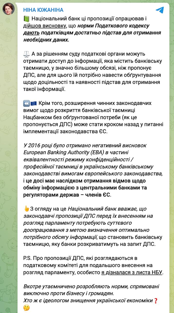 Южанина пишет, что эти изменения рассматриваются в налоговом комитете тайно, и она узнала о них от НБУ.