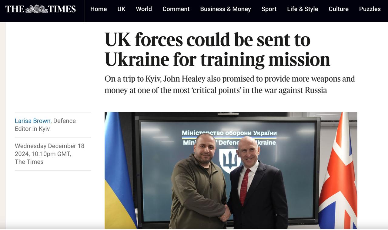 Министр обороны страны Джон Хили в ходе визита в Киев 18 декабря сказал, что Лондону необходимо "сделать обучение более соответствующим потребностям украинцев". На вопрос, означает ли это отправку инструкторов в Украину, он ответил обтекаемо, но дал понять, что такой вариант не исключен.