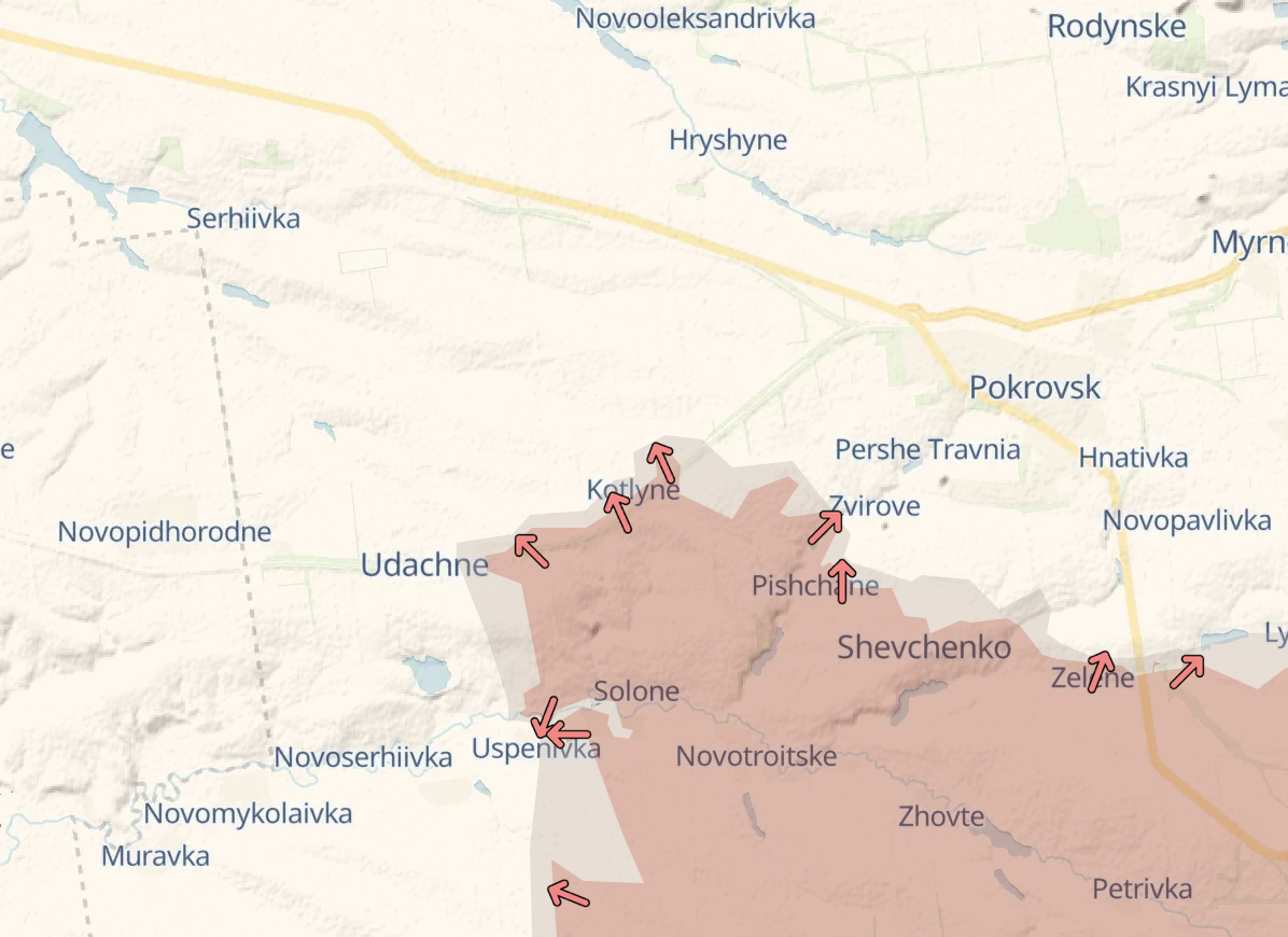 На Покровском направлении россияне пытаются продвигаться в направлении Сергеевки (правый фланг дороги Павлоград – Покровск), сообщает украинский военный Станислав Бунятов. По его словам, "если посмотреть на карту, то становится очень грустно".