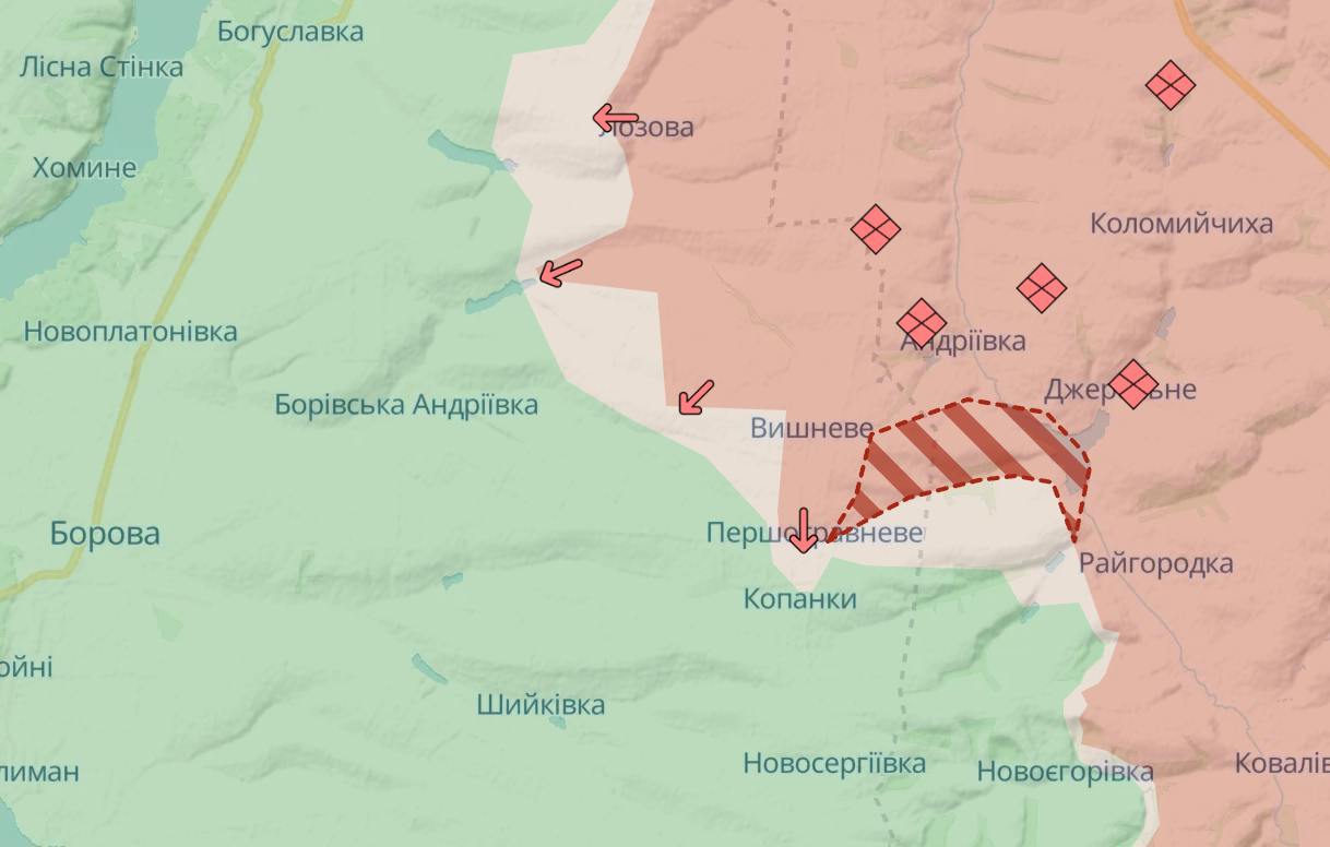А также на северной части фронта в Харьковской области - захватила существенную часть Двуречной и продвинулась под Боровой.