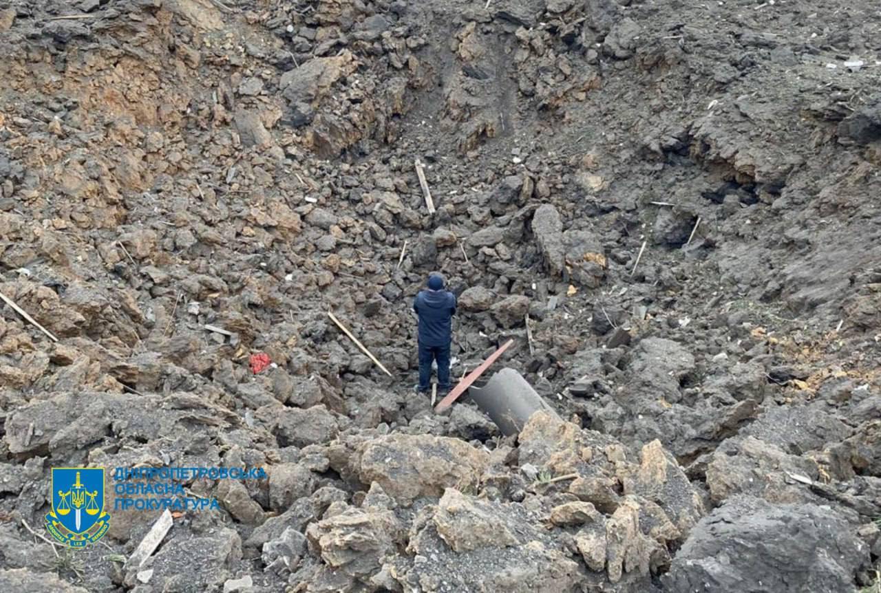 Фото огромной воронки после обстрела Синельниково опубликовала прокуратура.