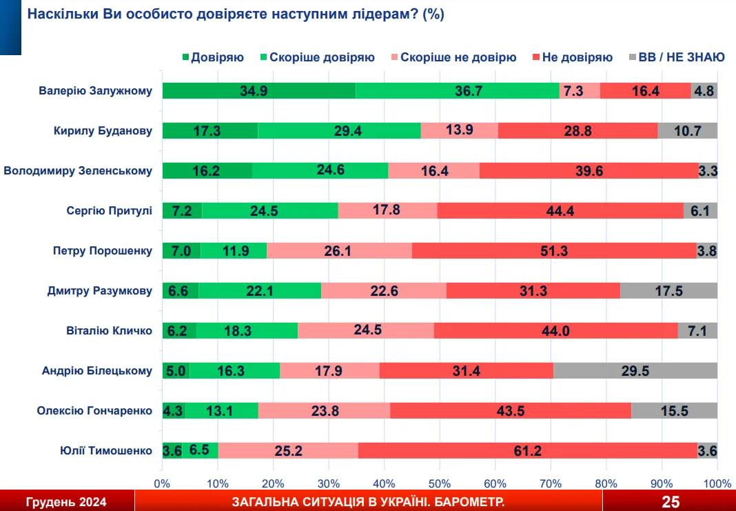 Залужному доверяют на треть больше украинцев, чем Зеленскому - опрос