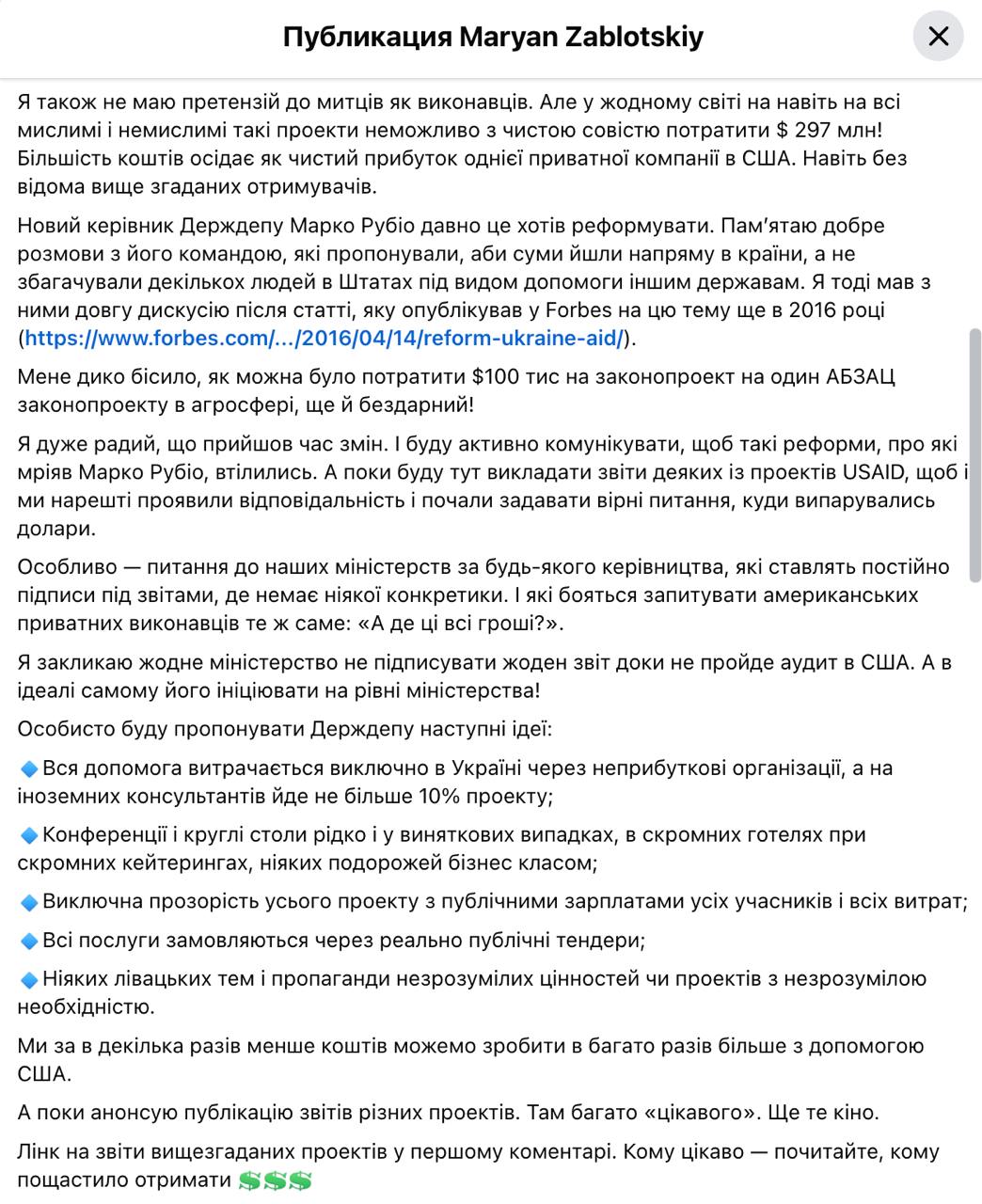 В украинской прессе вчера уже появилось подтверждение того, что USAID в Украине получило приказ приостановить все проекты и расходы на них в рамках остановки программ помощи по линии Государственного департамента.