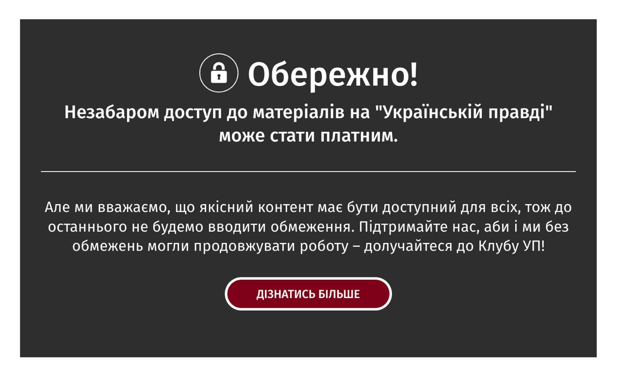 При этом УП дала понять, что может ввести даже платный доступ на сайт и призывает, чтоб этого не случилось, "поддержать" издание.