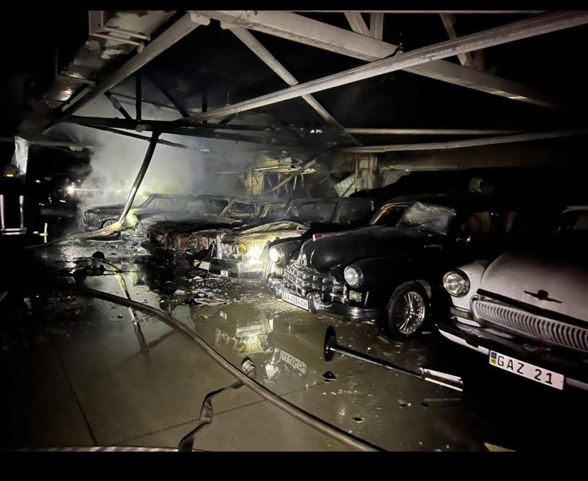 В Киеве из-за атаки беспилотников горел музей ретро-автомобилей Януковича в Межигорье. Об этом свидетельствуют фото здания и номера авто. В частности, пострадал белый автомобиль "Волга" с номерами ГАЗ 21, который попадал на фото с музея.