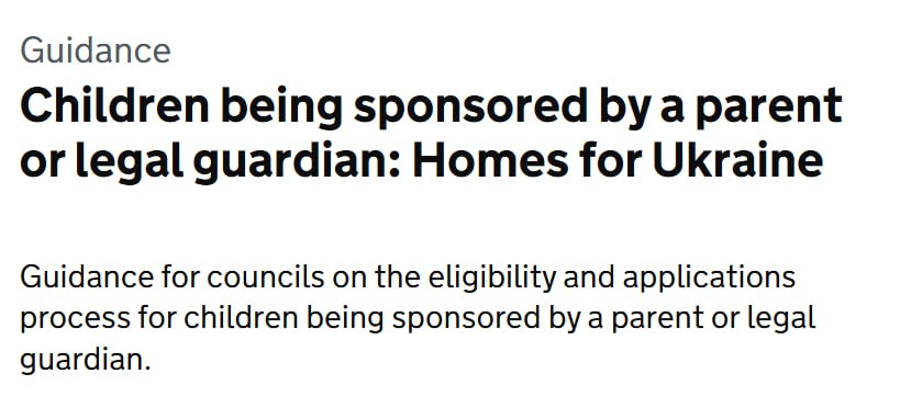 Сегодня правительство объявило, что заявку на спонсорство своего ребенка по программе Homes for Ukraine может подать родитель или законный опекун, находящийся в Великобритании по любой из визовых схем, доступных для украинцев.