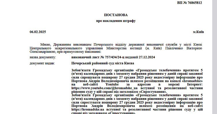 "Громадское" оштрафовали на 5,1 тысячи гривен за невыполнение решения суда об опровержении информации об известном юристе Андрее Портнове.