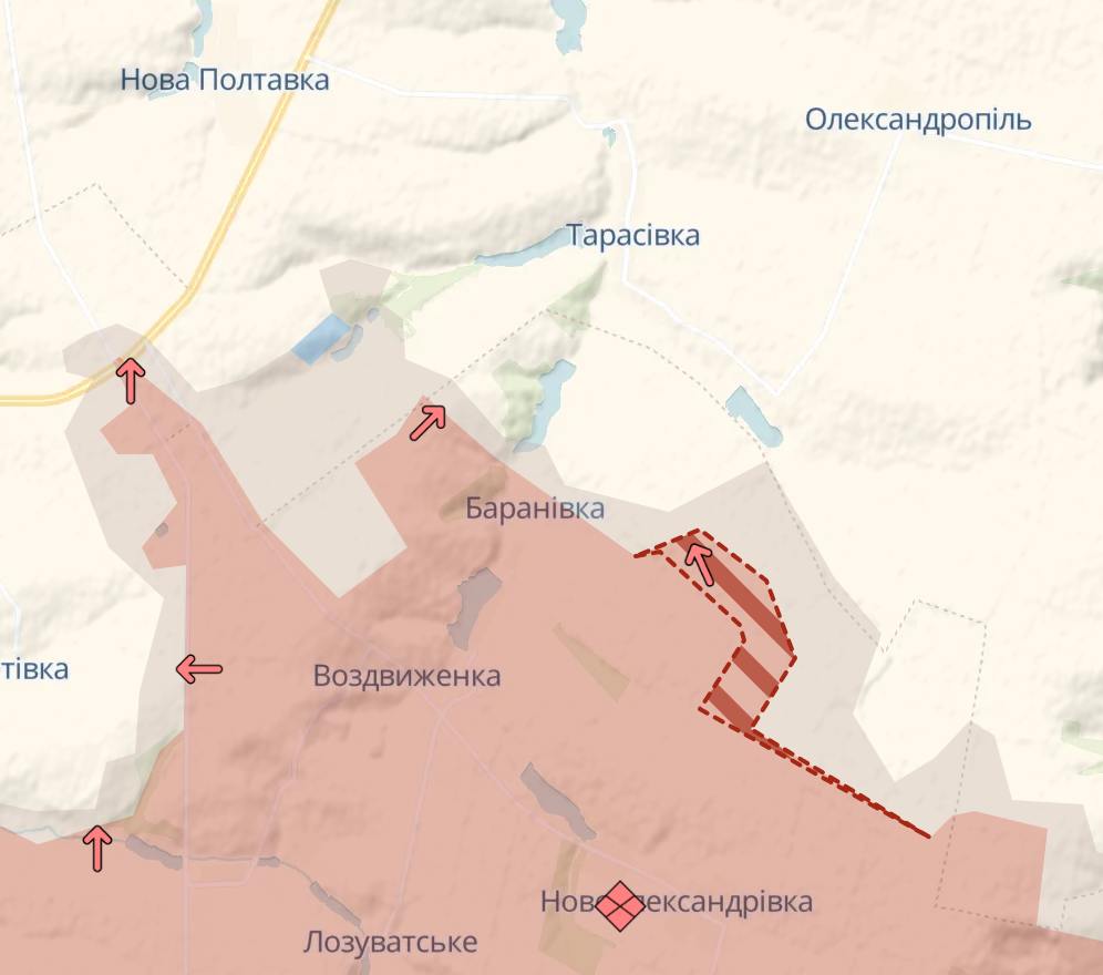 Также российские войска продвинулась около Барановки, что возле трассы Покровск - Константиновка.