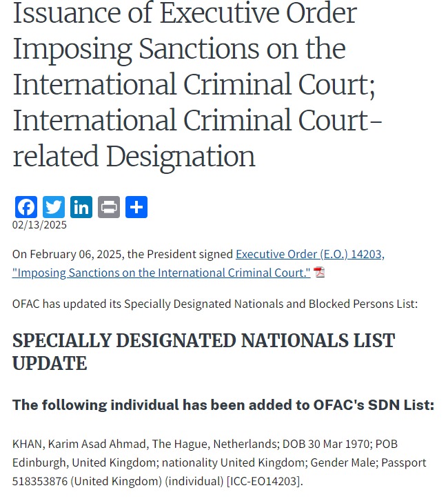 Санкции против МУС включают блокировку имущества и активов, а также приостановку въезда в США сотрудников суда и их ближайших родственников.