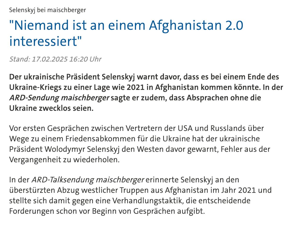 "Вы не можете просто убрать это (членство в НАТО - Ред.) со стола. Это так не работает. Я не думаю, что кто-то заинтересован в Афганистане 2.0. У нас есть опыт того, что происходит, когда кто-то заканчивает что-то, не обдумав это, и очень быстро уходит", - сказал президент Украины.