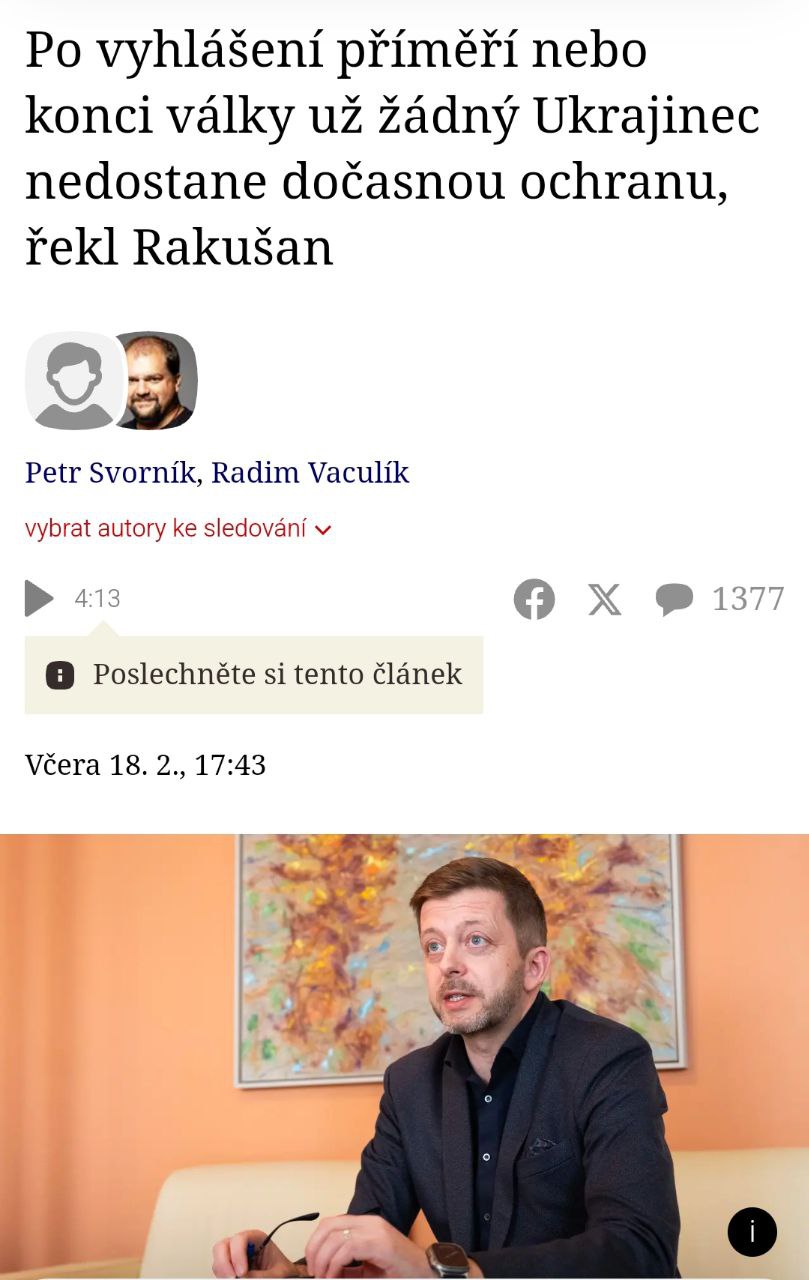 По его словам, с момента прекращения огня или войны в целом "ни один украинец в Чехии не получит временной защиты".