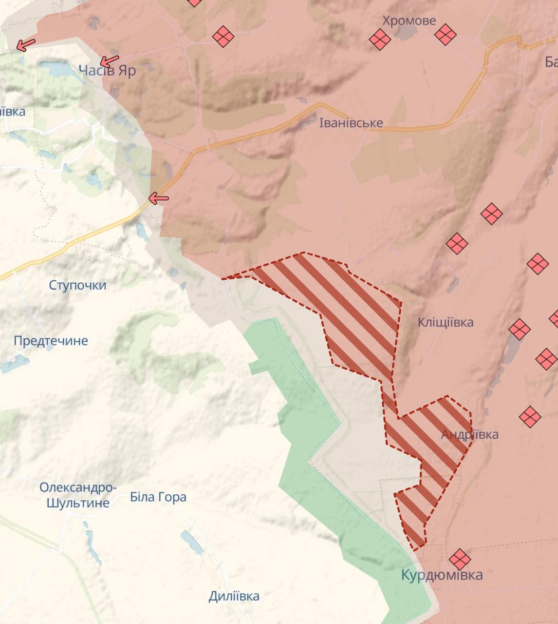Также россияне существенно продвинулись в районе Клещеевки и Андреевки, где у них давно не было продвижения.