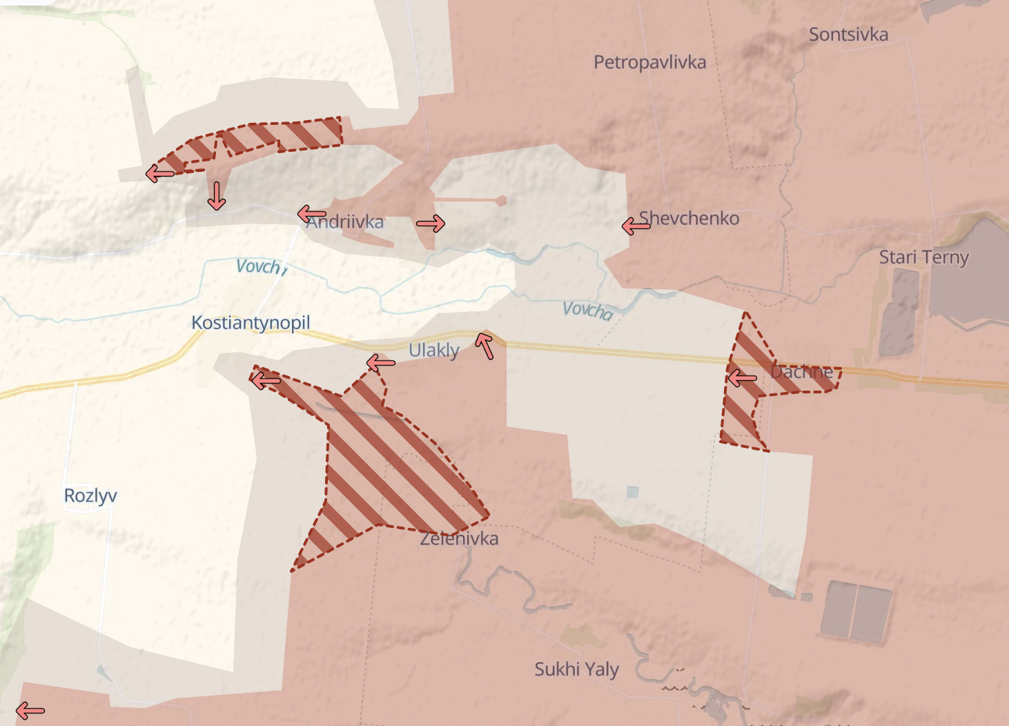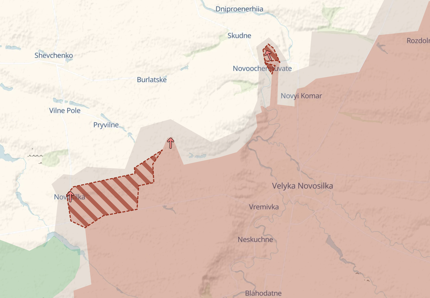 Продолжается наступление РФ и со стороны Великой Новоселки. К западу от нее россияне захватили половину села Новоселка, расширили плацдарм на правом берегу реки Мокрые Ялы и продвинулись восточнее - в Новоочеретоватом.