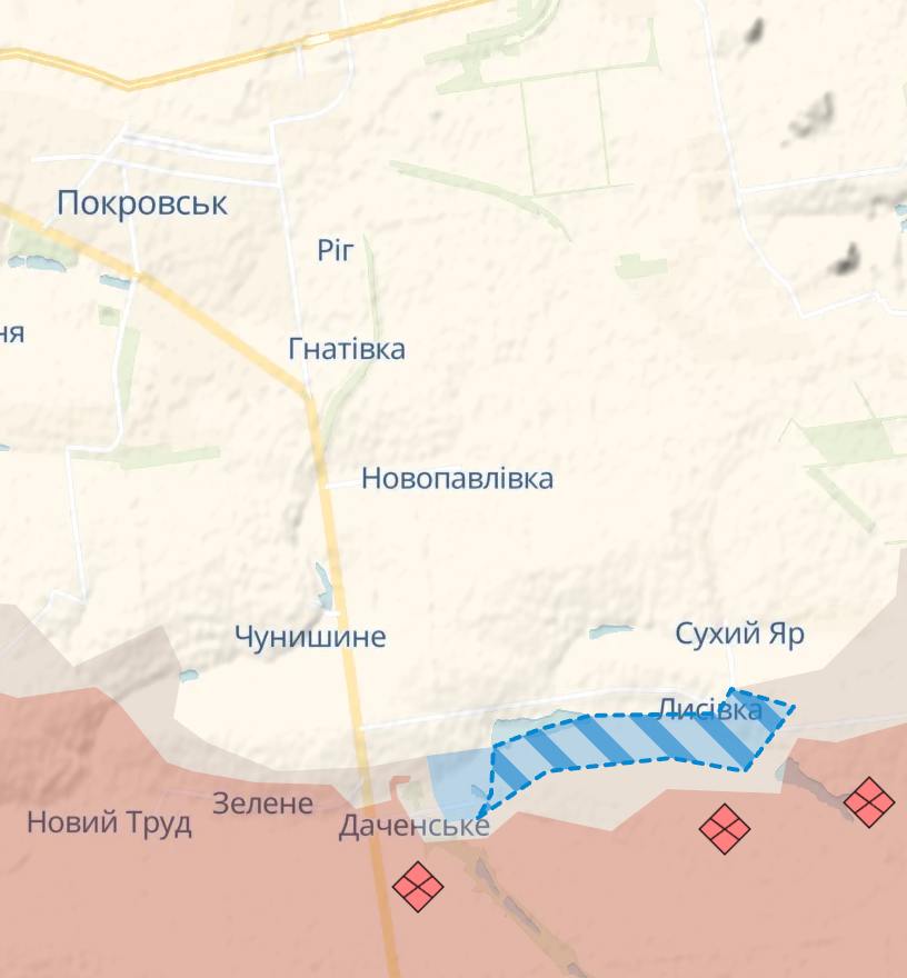 В то же время ВСУ снова атаковали южнее Покровска и продвинулись в Лысовке.