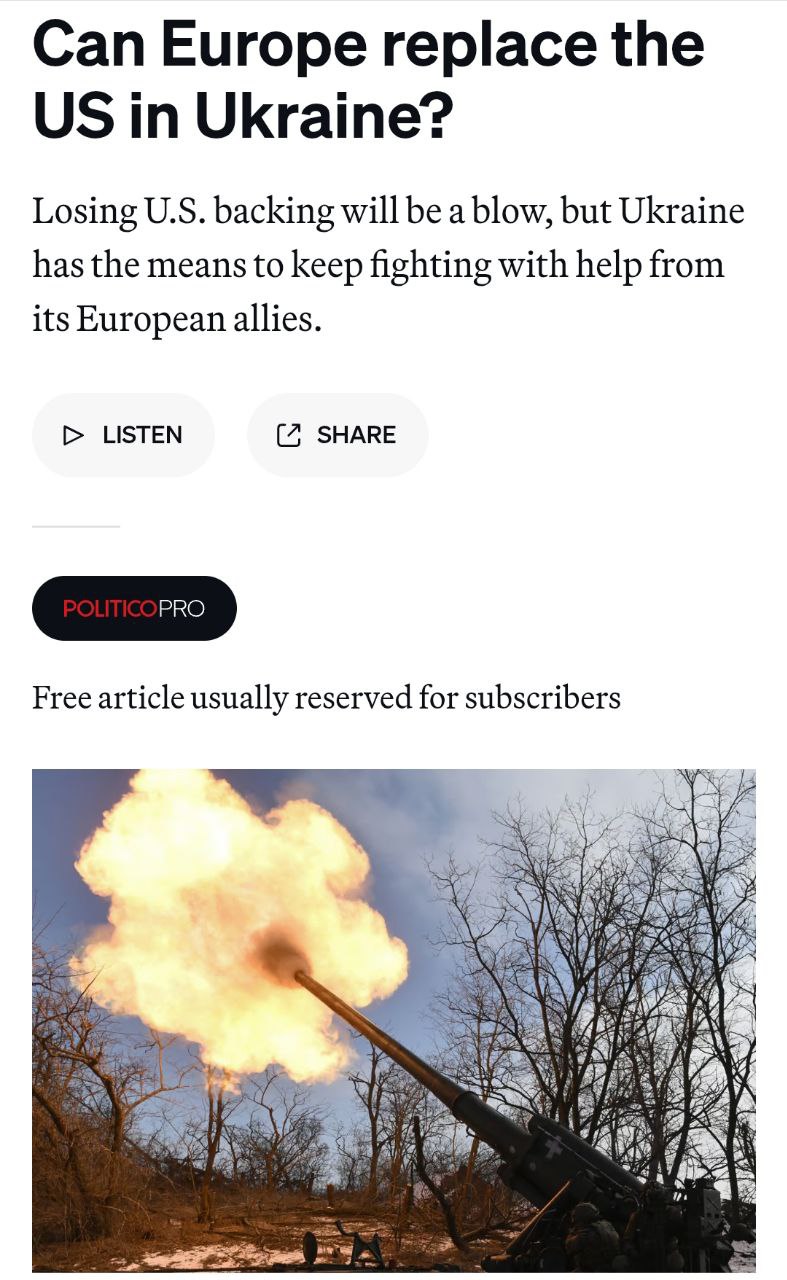 Однако уточняется, что некоторые виды американского вооружения, такие как современные системы ПВО, баллистические ракеты, навигационные системы и дальнобойная артиллерия, будет практически невозможно заменить. Европа просто не производит достаточного количества таких систем, а в некоторых случаях не производит вовсе.