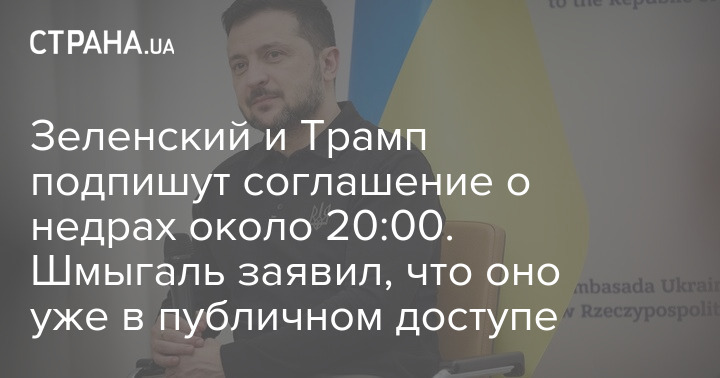 Зеленский и Трамп подпишут соглашение о недрах около 20:00. Шмыгаль заявил, что оно уже в публичном доступе