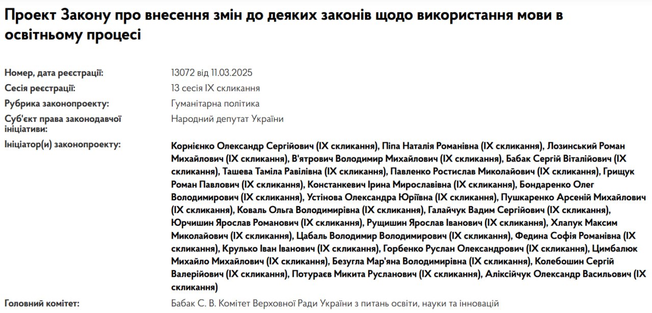 Ранее мы публиковали подробности внесенного Натальей Пипой законопроекта №12086, обязывающего школьников и учителей общаться во время перемен по-украински.