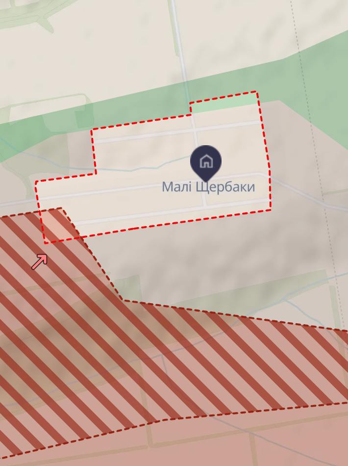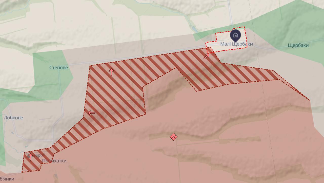 По данным украинского военного паблика, РФ за последние дни продвинулась между Степовым и Малыми Щербаками и продолжает активно атаковать в попытке захватить их.