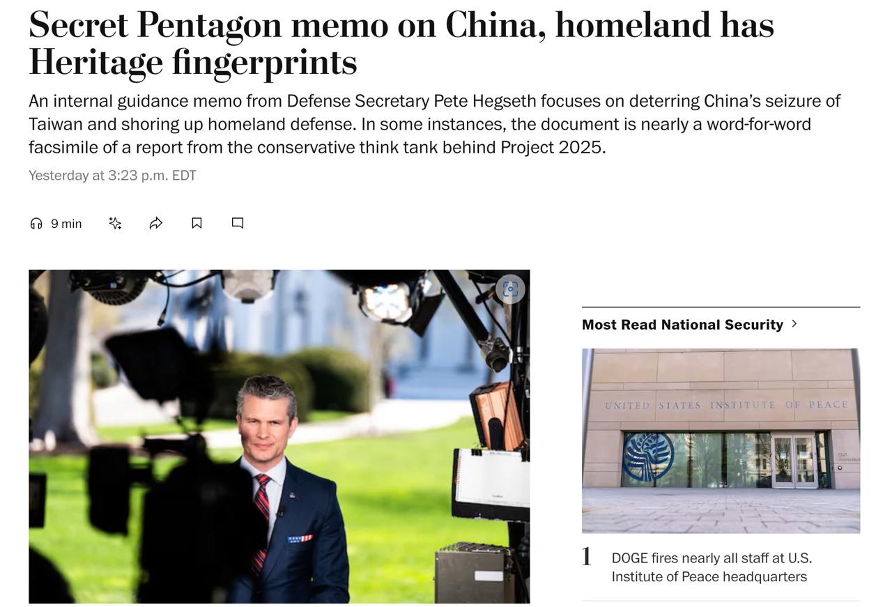 Глава Пентагона Пит Хегсет переориентировал вооружённые силы США на сдерживание Китая в Тайване и усиление внутренней обороны.