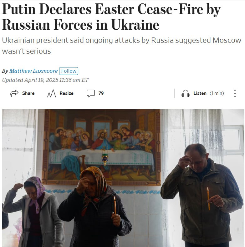Тем временем газета The New York Times считает, что Россия продемонстрировала открытость к переговорам, объявив пасхальное перемирие.