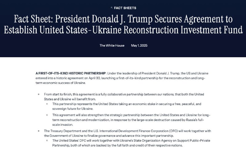 Белый дом обнародовал заявление о подписании соглашения о недрах между Украиной и США. Оно содержит некоторые подробности о сделке, о которых представители украинского правительства не упоминали публично.