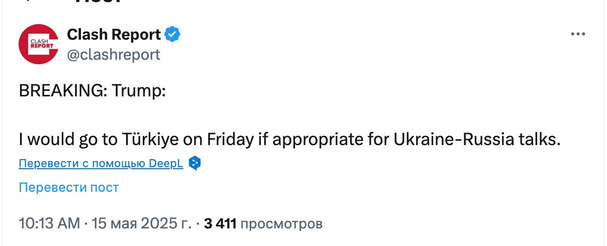 Ранее Трамп заявил, что "поехал бы в Турцию в пятницу, если бы это было уместно для переговоров между Украиной и Россией".